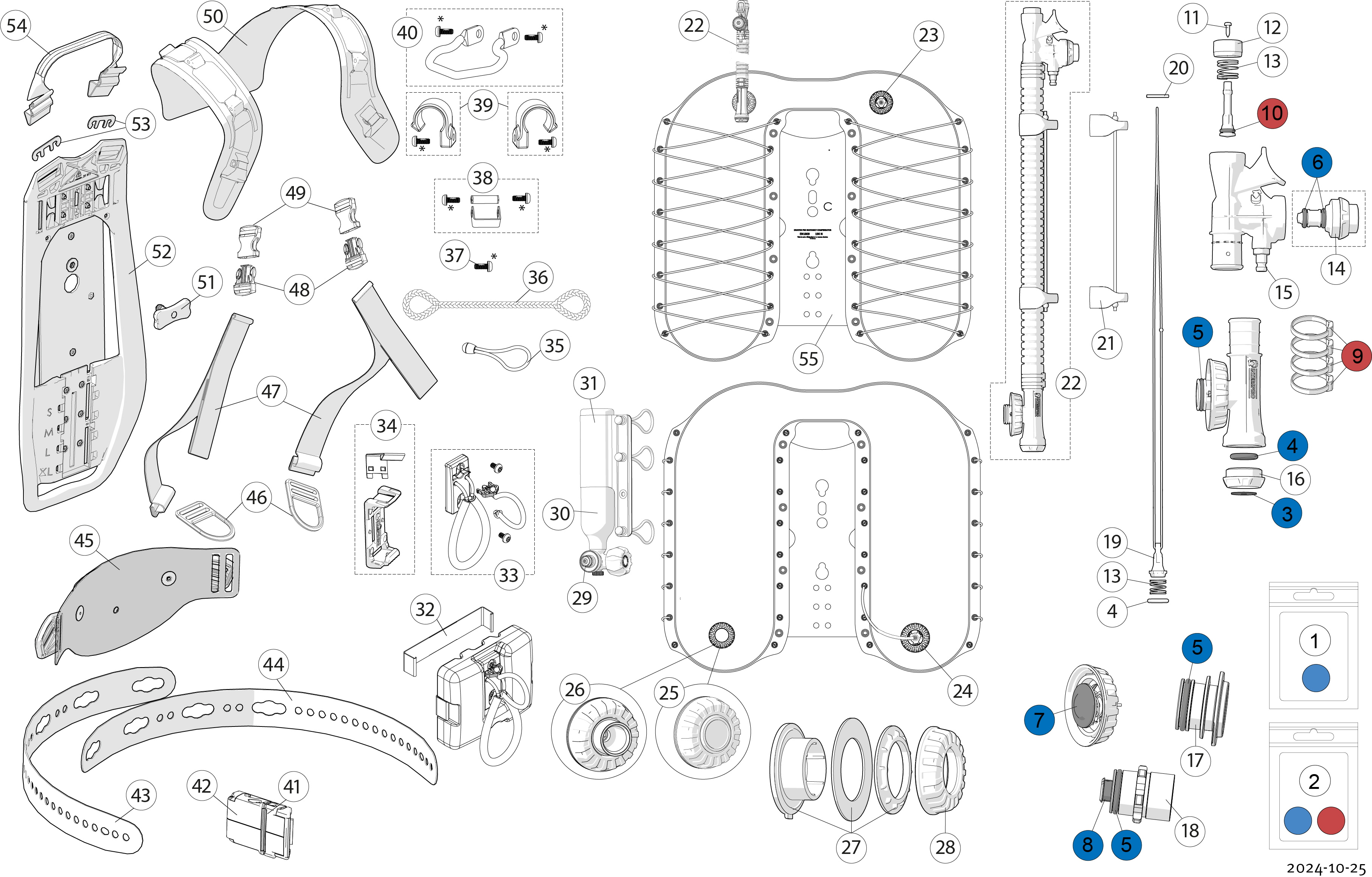Die Luftversorgung besteht aus einem neuen Flaschenpaket mit Vollverbundflaschen mit einem neu entwickelten Schnellverschluss zum Tragegestell / BC, hier können Sie mehr über das Paket lesen.